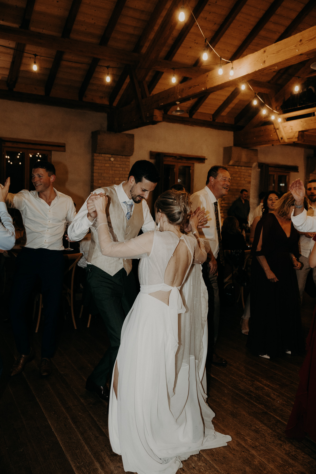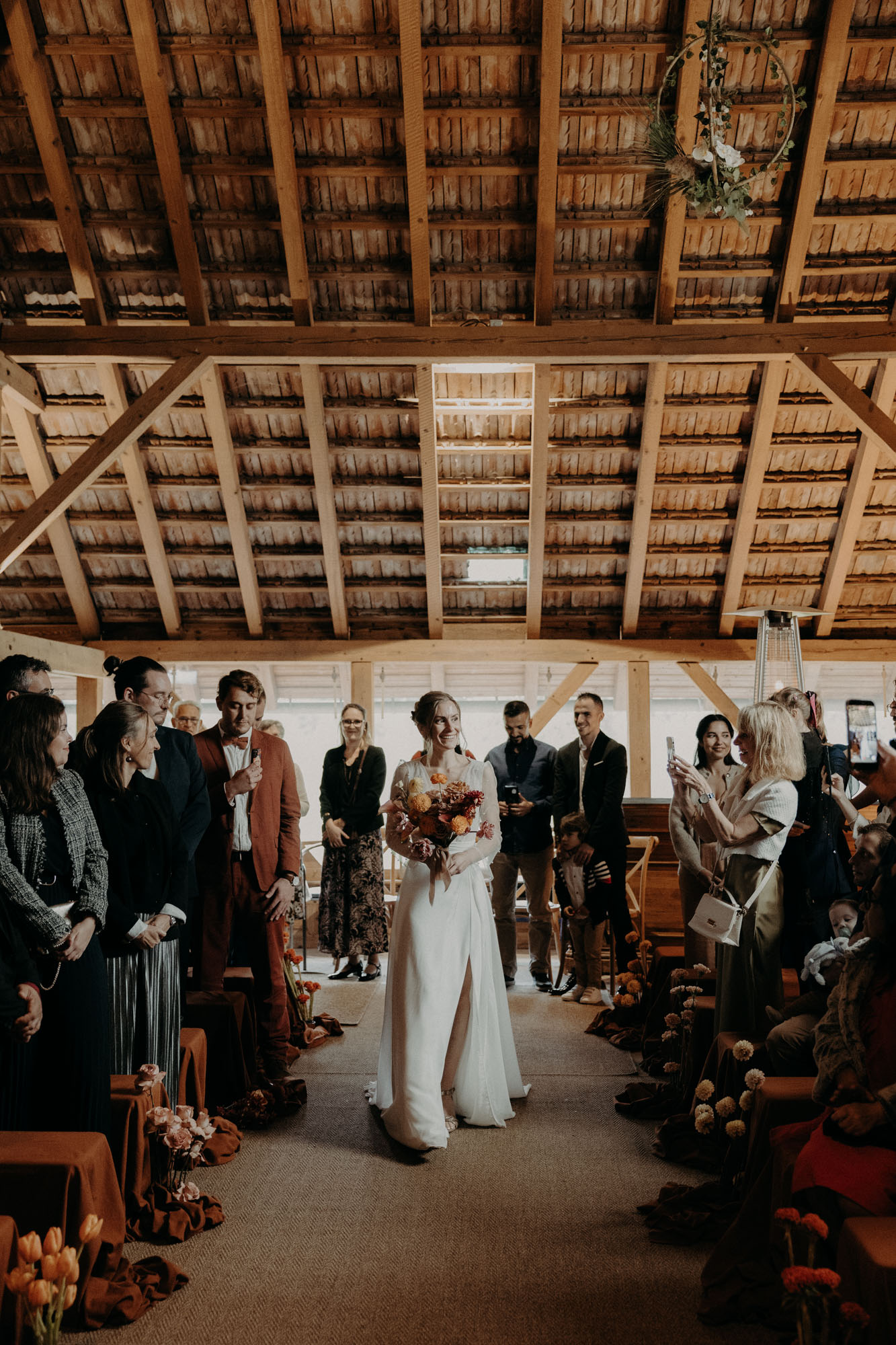 Il me semble que nous n’aurions pas pu rêver mieux comme conditions pour cette journée. Même si la cérémonie avait été pensée en extérieur, la météo capricieuse en a décidé autrement. Mais finalement, toute l’équipe a su composer avec les conditions qui lui étaient données, s’adapter, et en faire quelque chose de beau. Et les mariés, eux, ont su profiter, qu’importe la météo. Finalement, c’était magnifique comme ça!